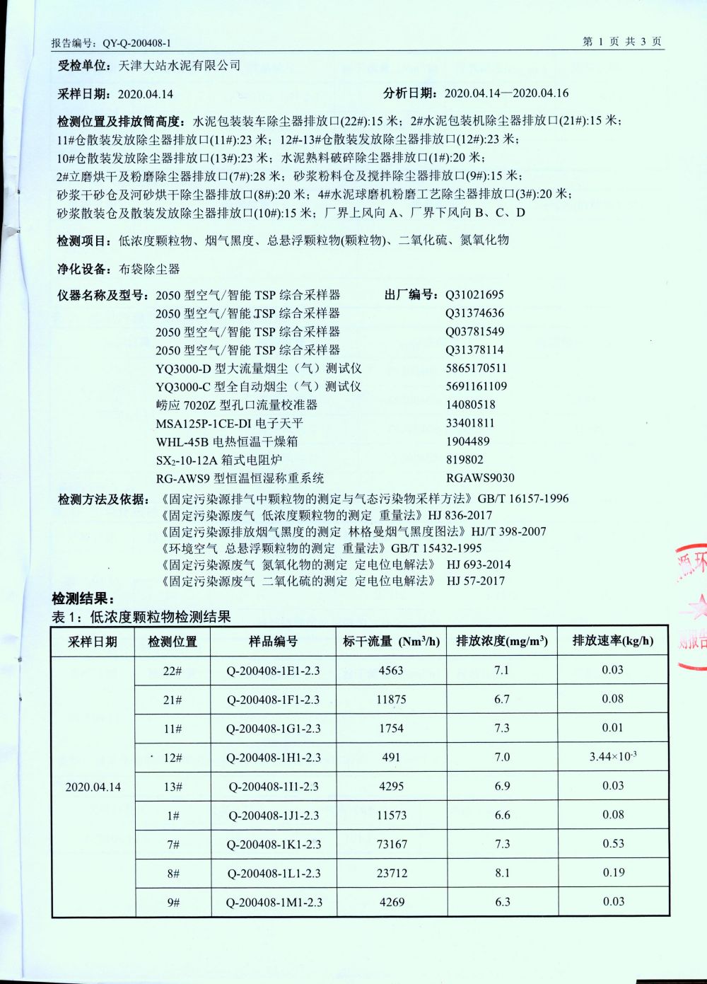 2020二季度大气监测立磨