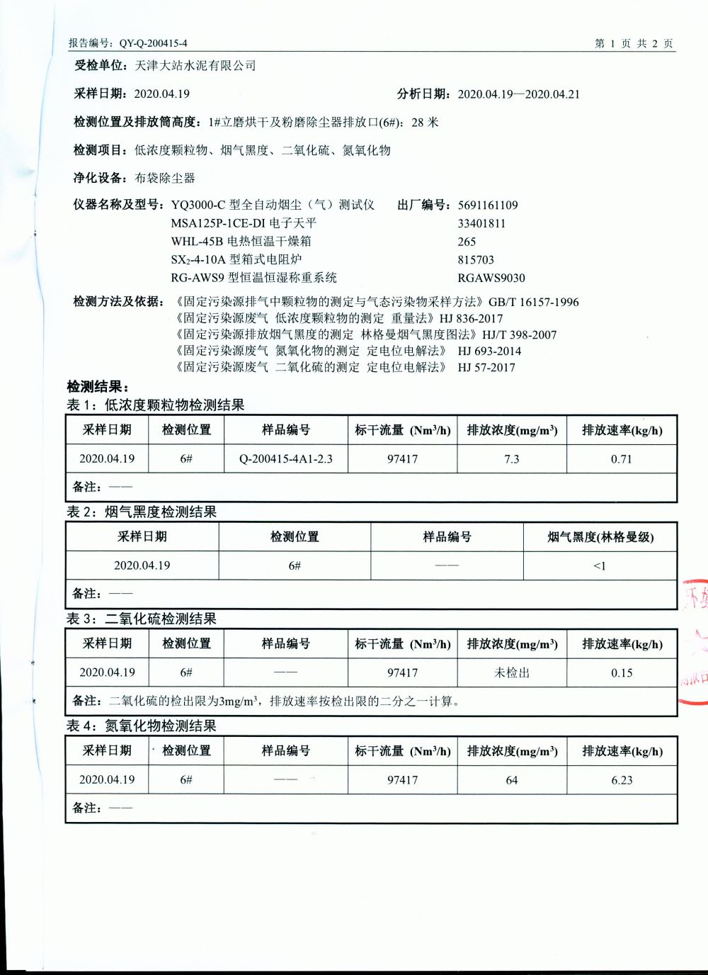2020二季度大气监测立磨