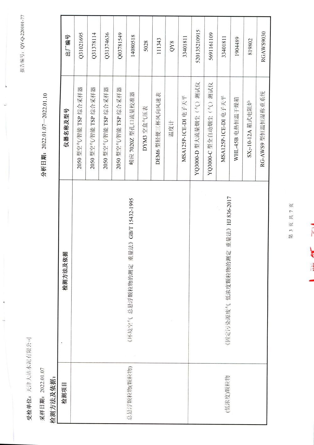 大气排放监测报告