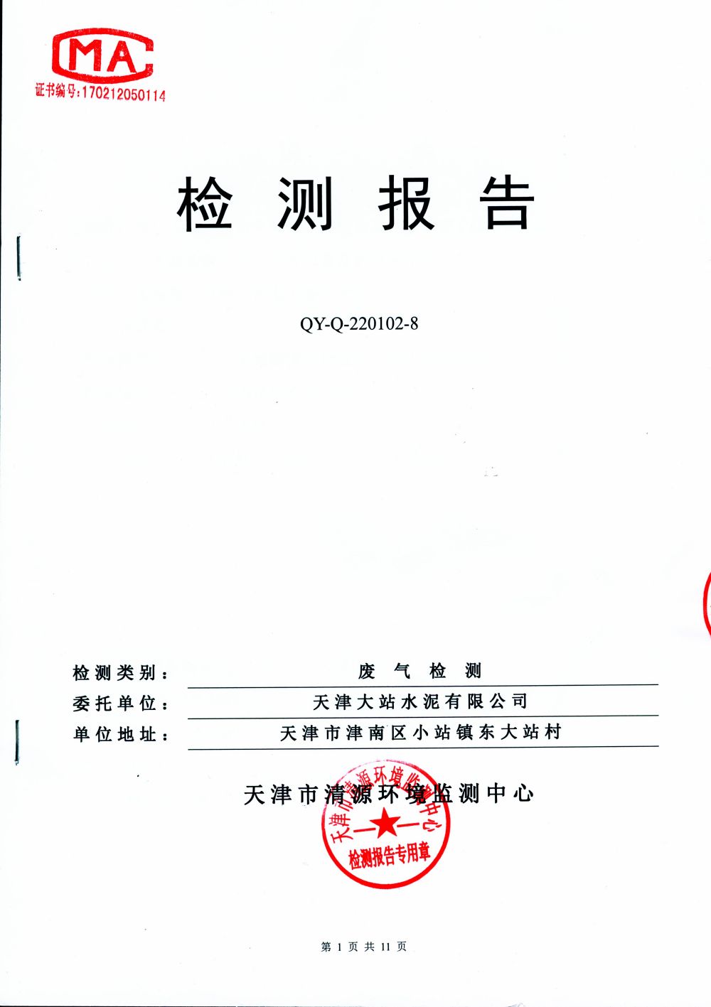 大气排放监测报告