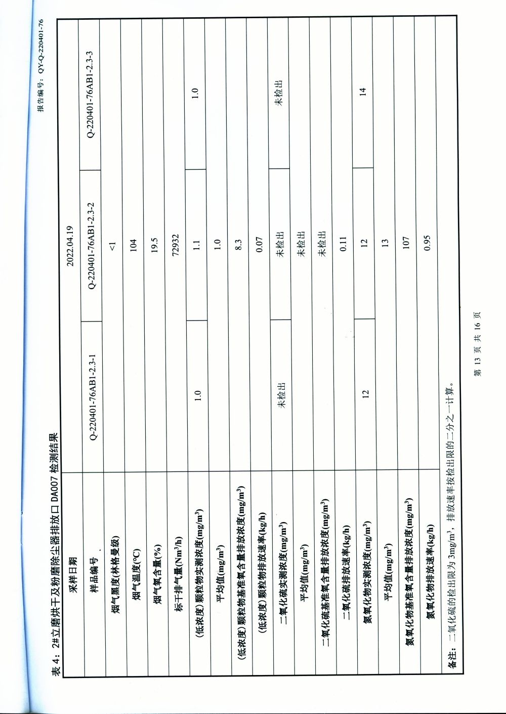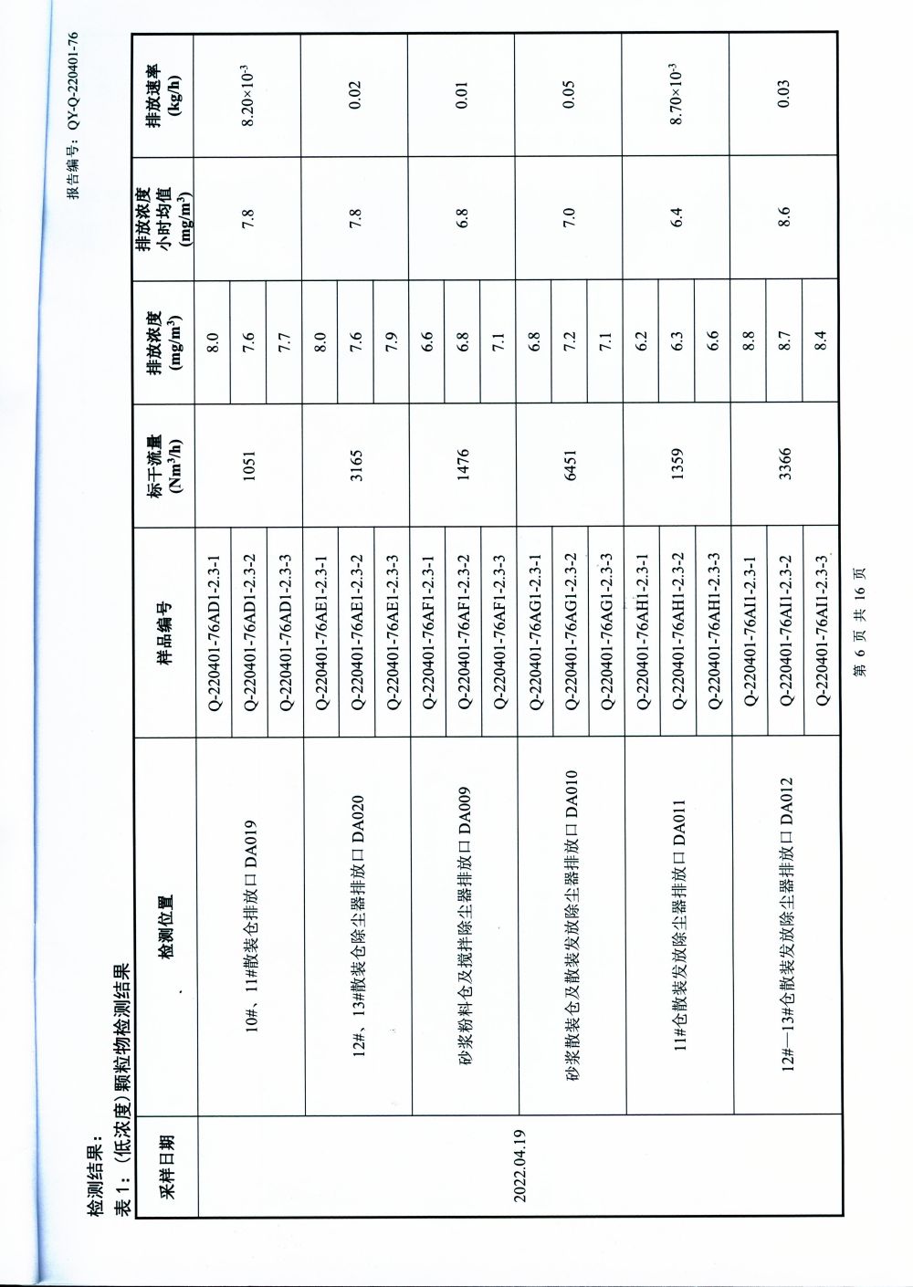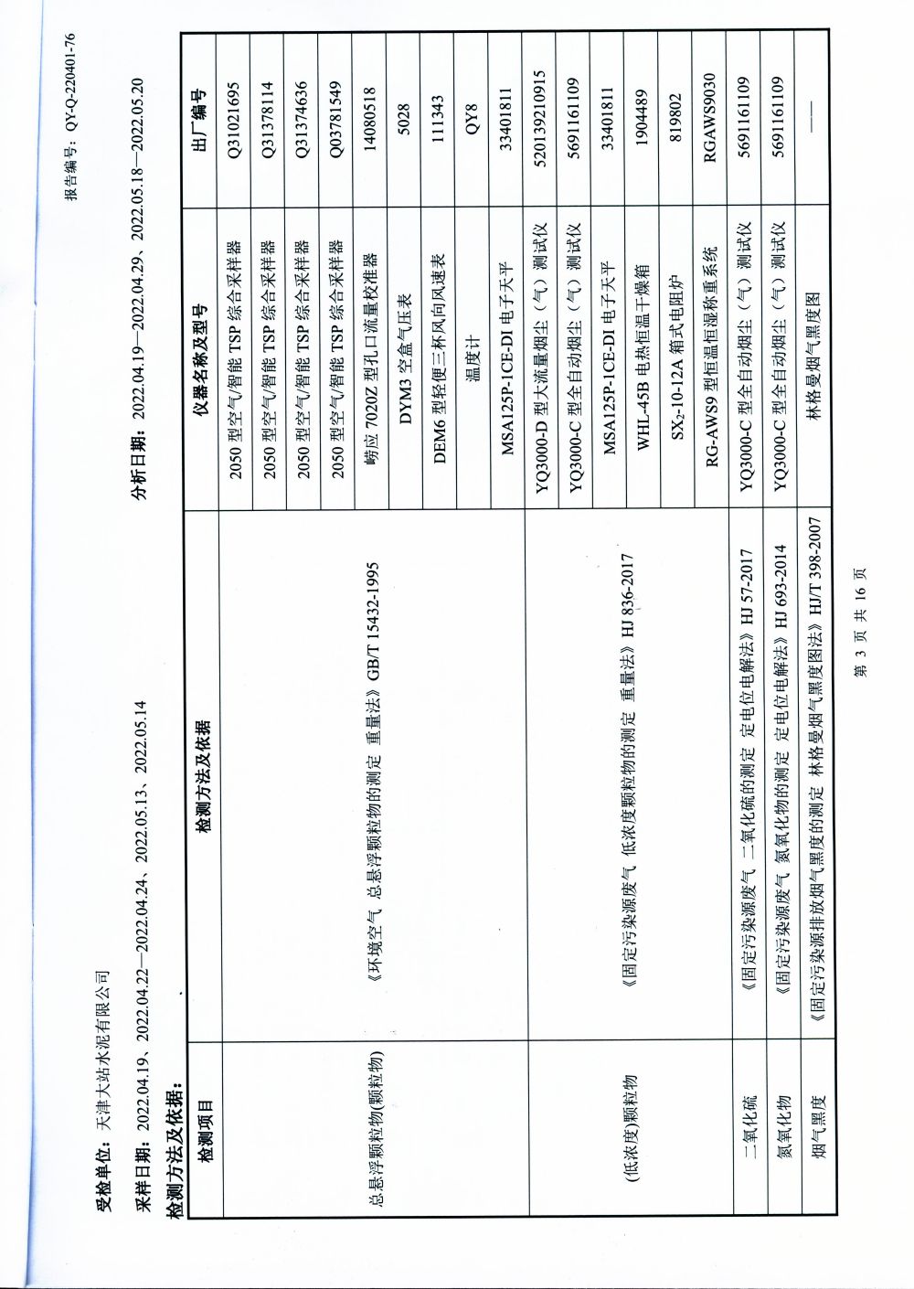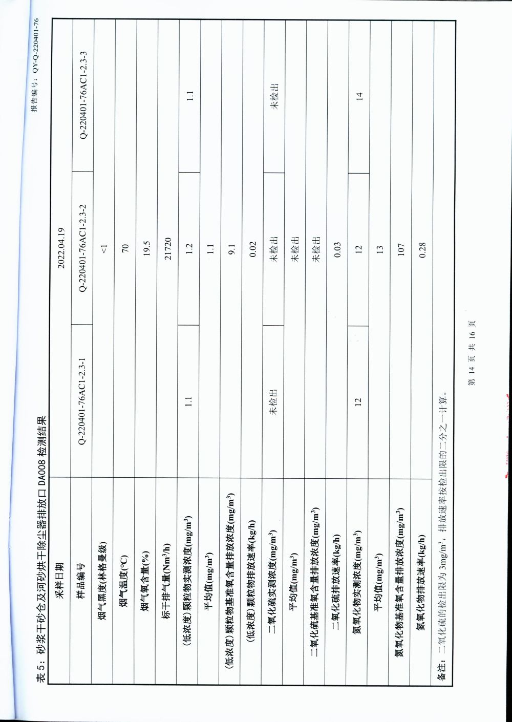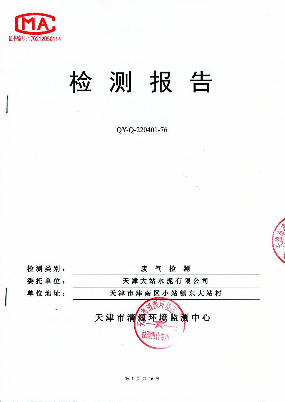 大气排放监测报告