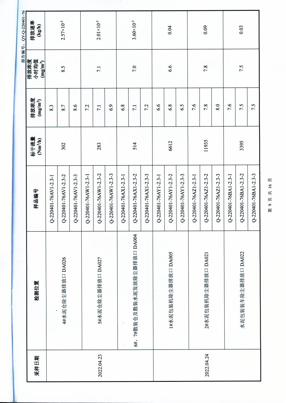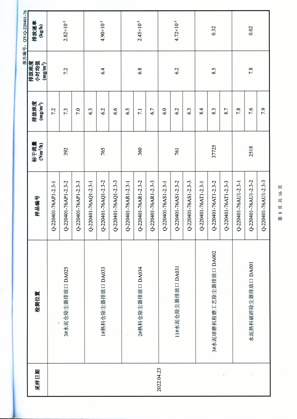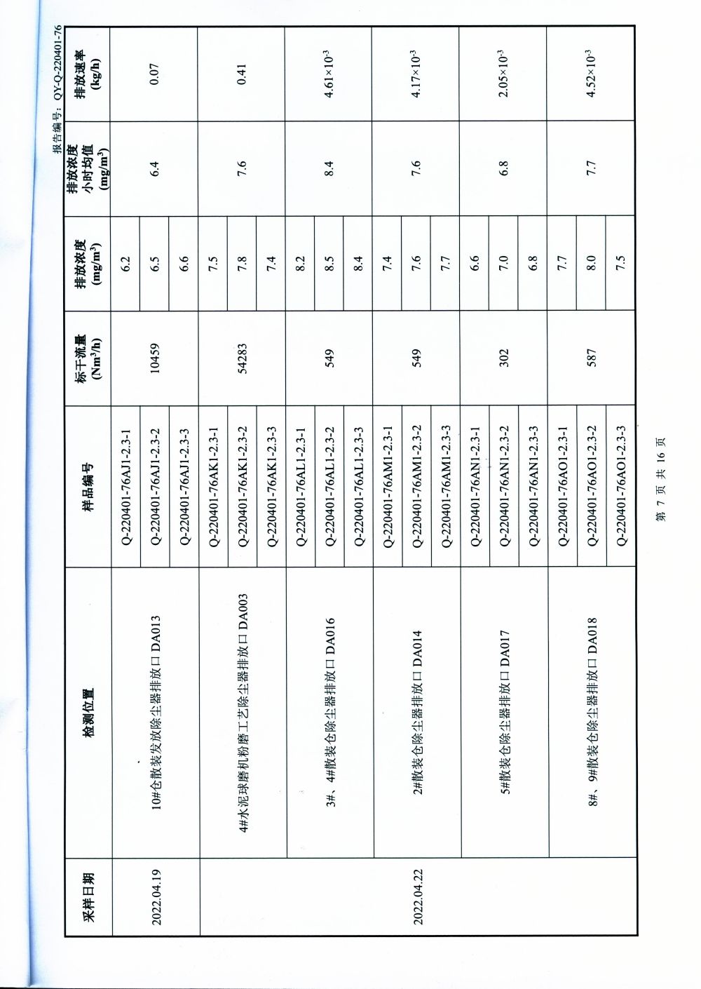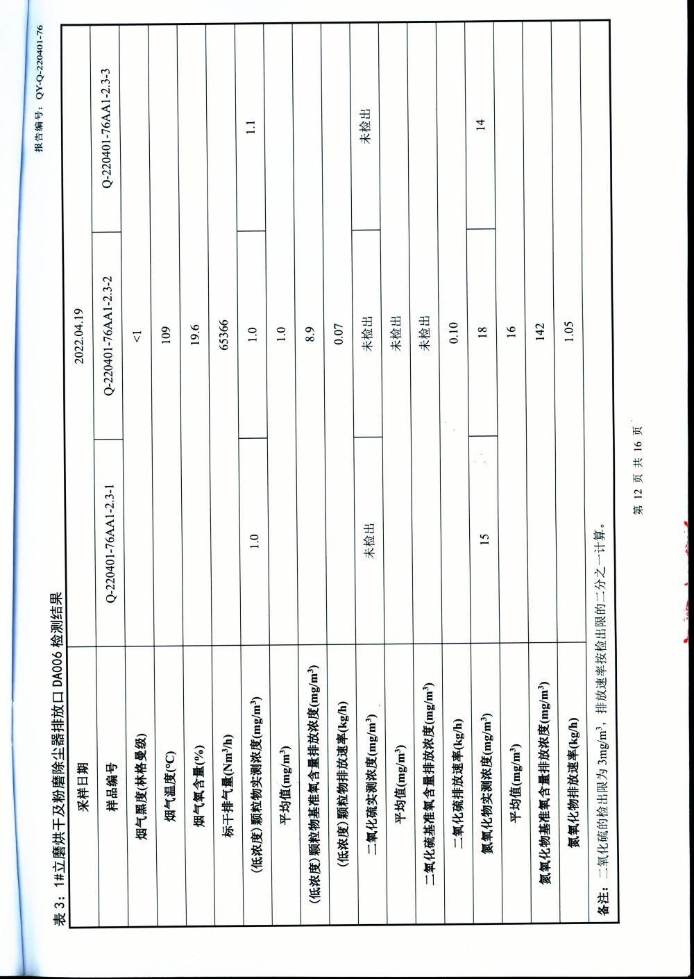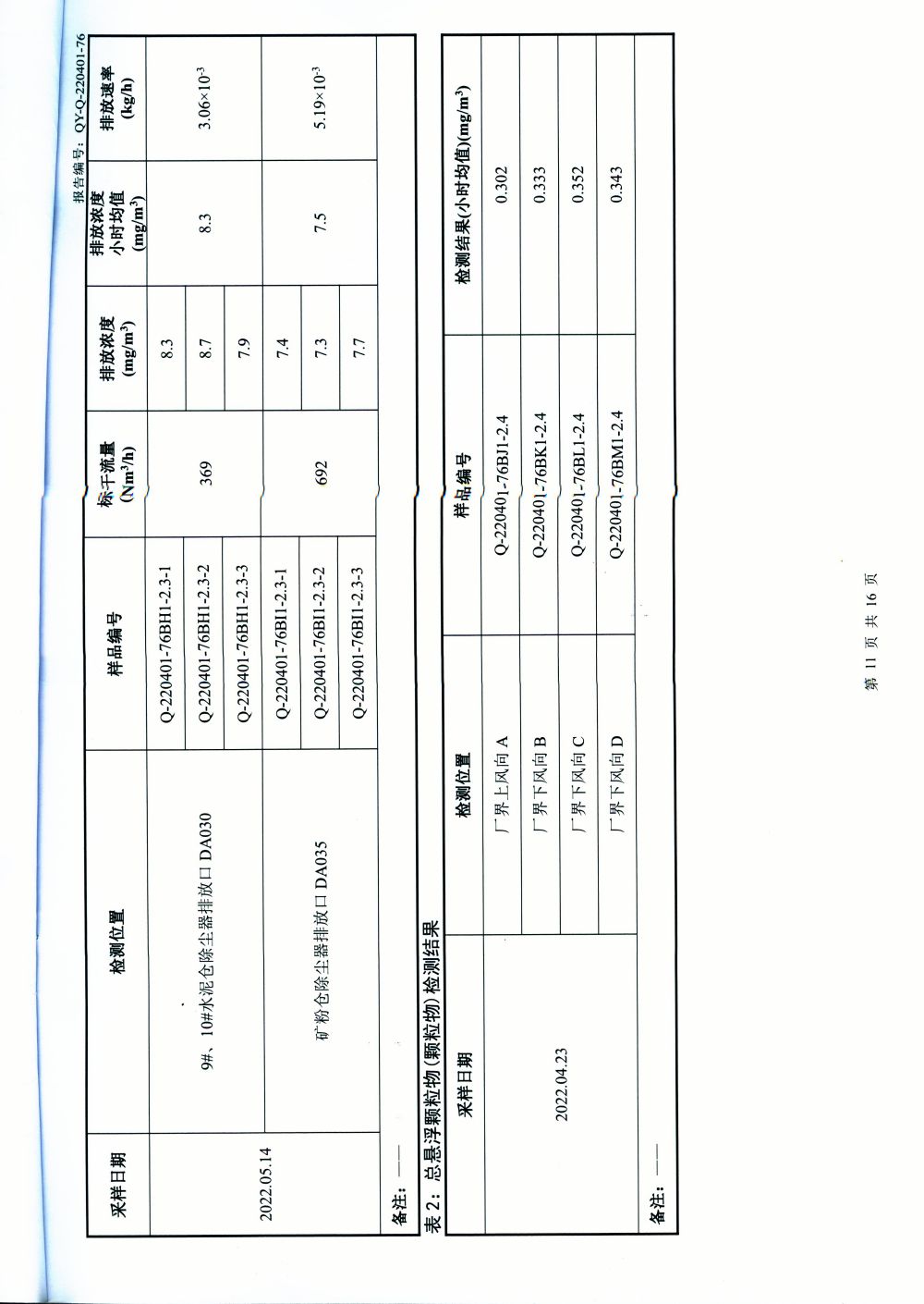 大气排放监测报告