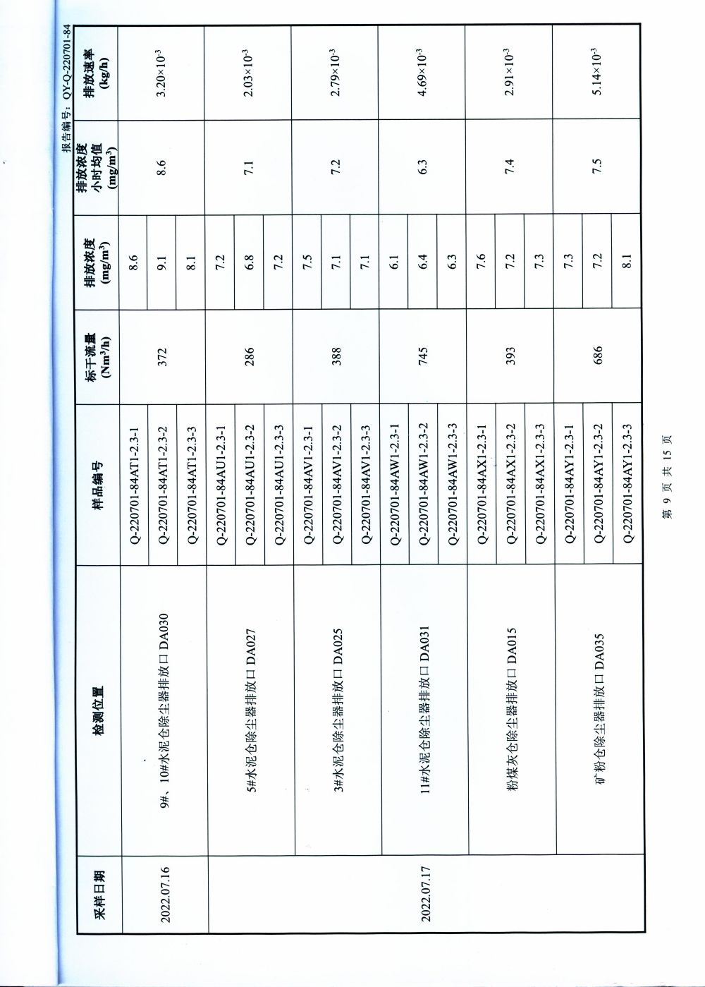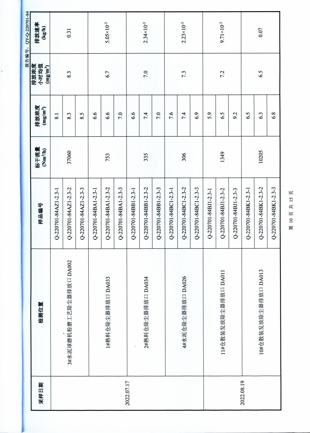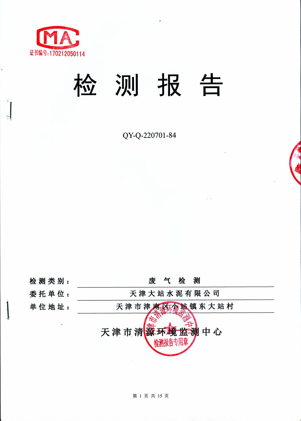 大气排放监测报告