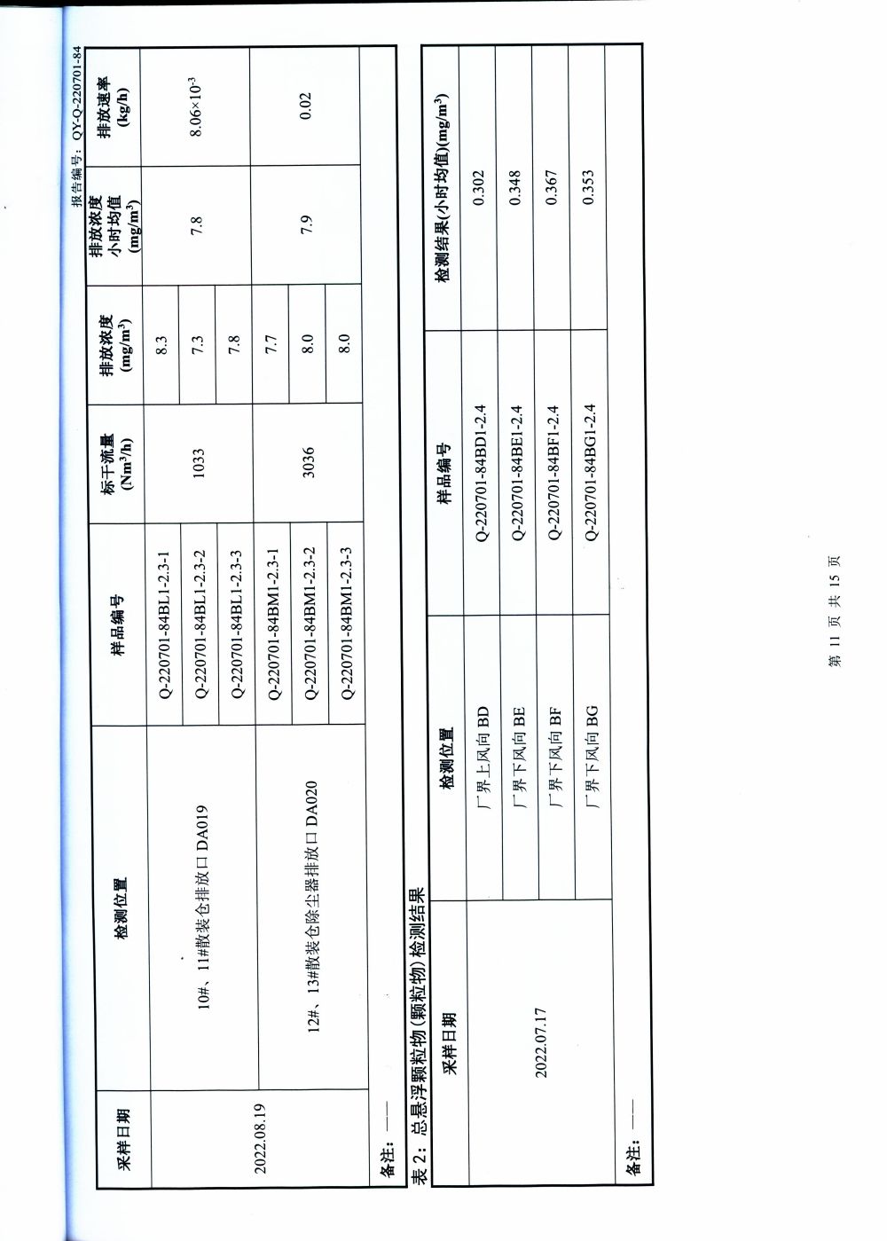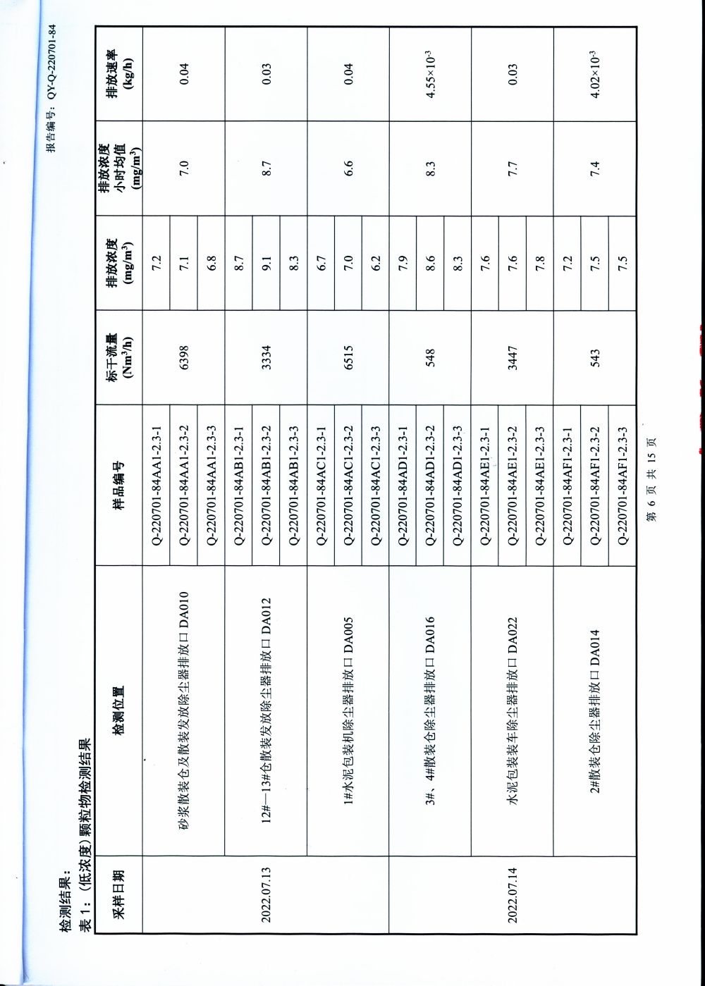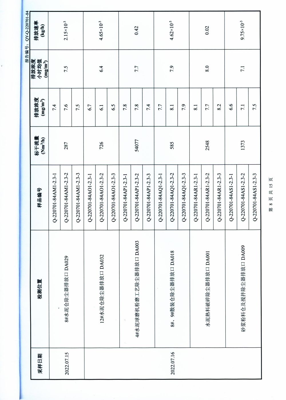 大气排放监测报告
