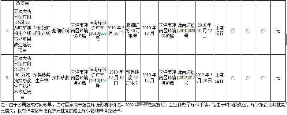 2条Φ2.2×7m水泥粉磨生产线(1#、2#水泥生产线),1条Φ3.0×9.0m水泥粉磨生产线(3#水泥生产线),设计产能40万吨/年。后为落实淘汰落后产能政策,于2011年和2013年7月将1#、2#水泥生产线淘汰,且全线拆除,淘汰落后产能20万t 。现主要产品为普通硅酸盐水泥42.5R、普通硅酸盐水泥42.5、矿渣硅酸盐水泥32.5P.S.A 。3#与4#水泥生产线位于厂区西侧,2016年全厂实际生产水泥276465.77t,运行时间3312h。 |