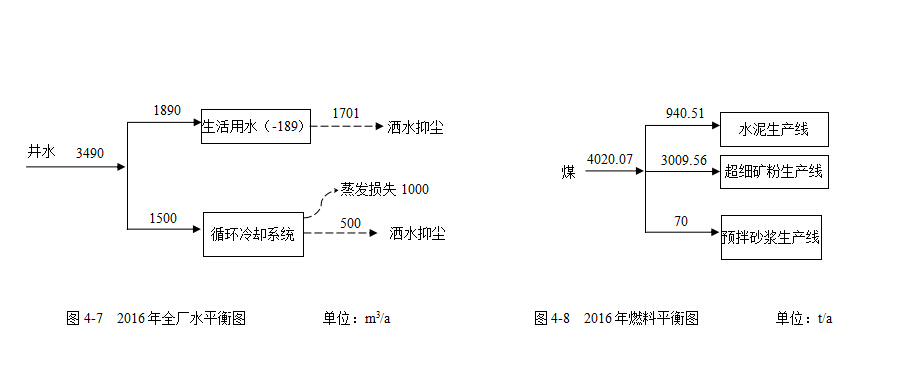 用水来自大站村的现有深井,用于生活用水和设备循环冷却水。循环冷却水排水用于洒水降尘,生活污水经沉淀后上层水用于洒水降尘。 |